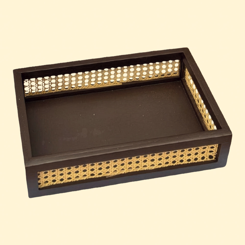 Redefine your workspace or vanity with the Ratan Series Teak Wooden Organiser. Handcrafted from dark-stained Teak Wood and genuine natural cane webbing, this collection blends bohemian texture with executive luxury. Available in Small, Medium, and Large sizes, or as a complete coordinated set